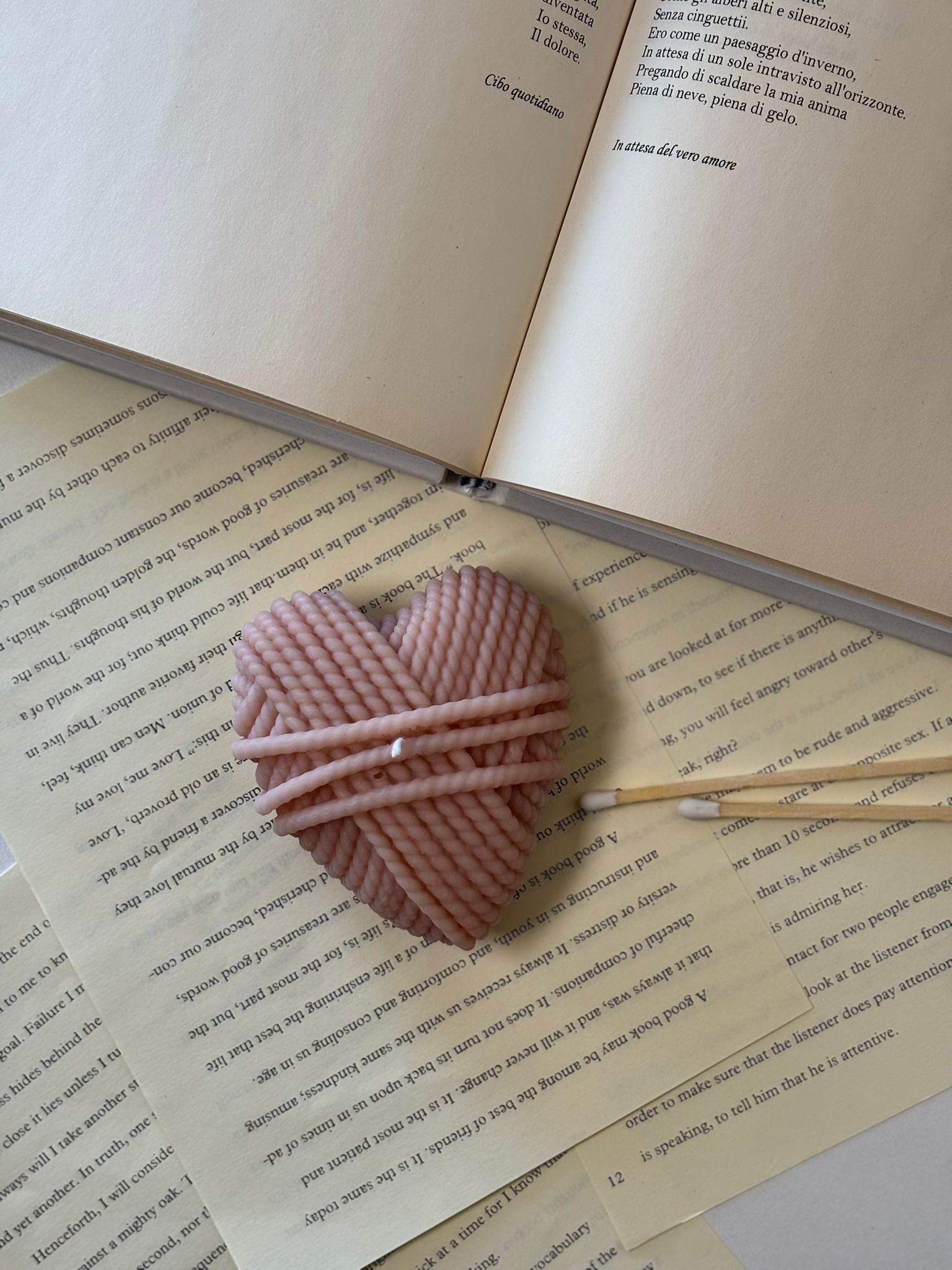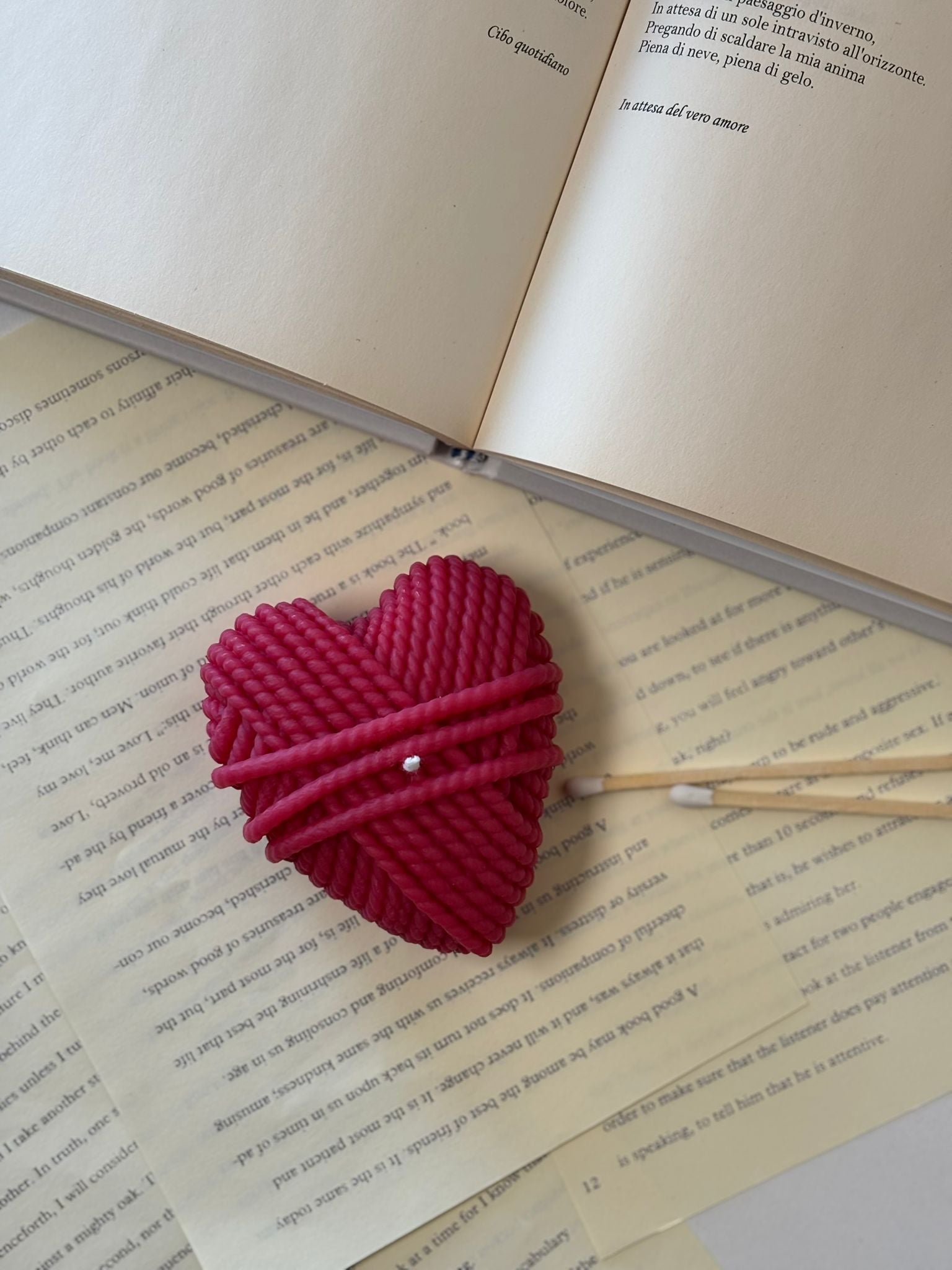Cuore in Gomitolo è una candela decorativa realizzata a mano in cera d'oliva vegetale, che combina artigianalità e sostenibilità. La sua forma a gomitolo intrecciato evoca il calore dei gesti fatti con dedizione, creando un elemento visivo distintivo per qualsiasi ambiente. Profumata alla vaniglia, diffonde una fragranza dolce e avvolgente che favorisce un'atmosfera accogliente e rilassante. Disponibile in bianco, rosa e rosso, si adatta facilmente a diversi stili d'arredo e occasioni. Ideale come regalo significativo o come tocco personale per la propria casa.
