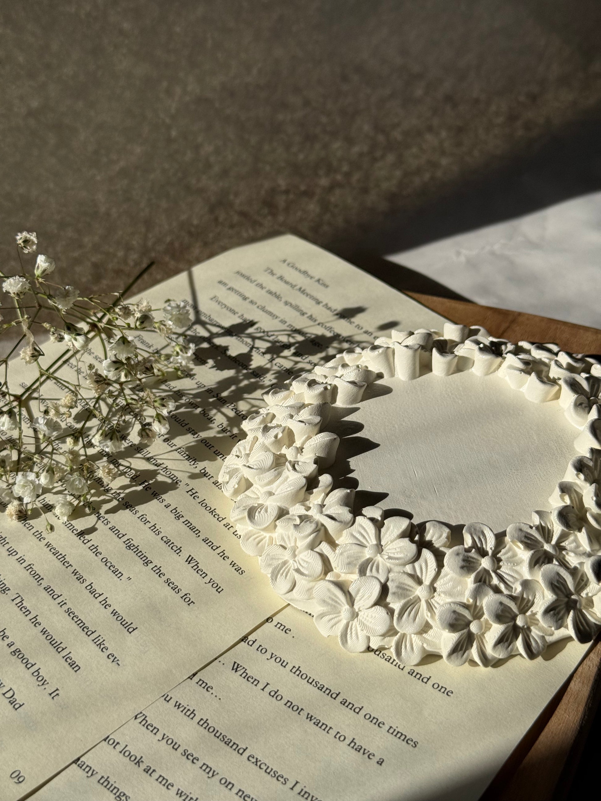 Piattino in gesso ceramico artigianale con bordo finemente decorato da delicati fiori. Versatile e raffinato, si presta perfettamente come portagioie, svuota-tasche o supporto per candele. Ogni pezzo è realizzato a mano, garantendo unicità e qualità costruttiva superiore. L'elegante design floreale aggiunge un tocco romantico e sofisticato a qualsiasi ambiente. Ideale sia come regalo premuroso che come elemento decorativo per elevare l'estetica dello spazio domestico.