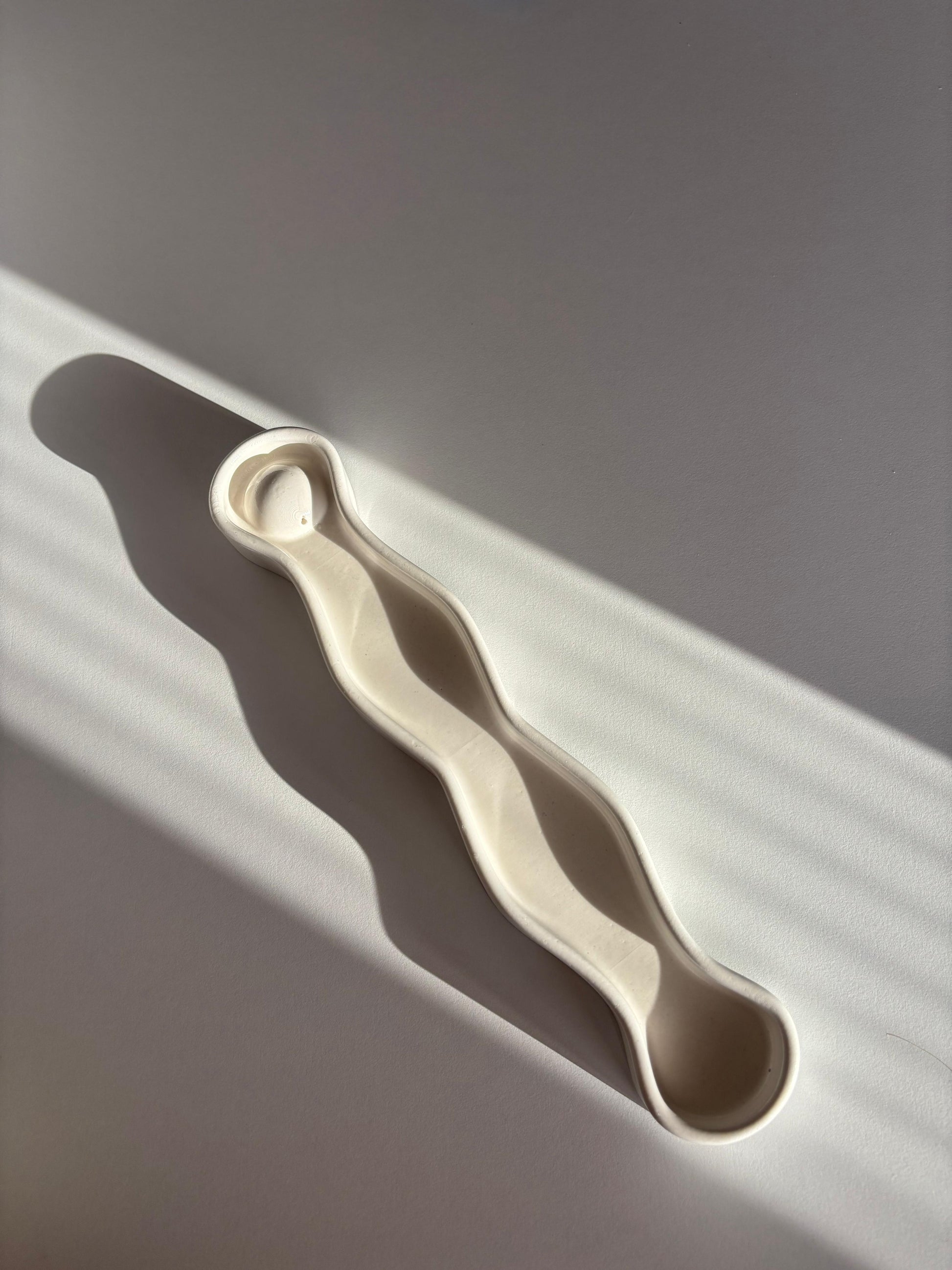 Elegante e minimalista, questo porta incenso in gesso ceramico affascina con le sue curve ondulate che evocano il fluire sereno dell'acqua. Il design sinuoso non è solo visivamente suggestivo, ma funzionale: guida delicatamente il bastoncino d'incenso e raccoglie la cenere seguendo il profilo naturale della forma. Perfetto per chi desidera arricchire spazi moderni, zone meditative o angoli relax con un oggetto che unisce estetica contemporanea e praticità. Compatibile con bastoncini d'incenso standard, ogni pezzo è rifinito con dedizione per regalare una presenza discreta ma d'impatto. Un dettaglio che trasforma l'ordinario in straordinario.