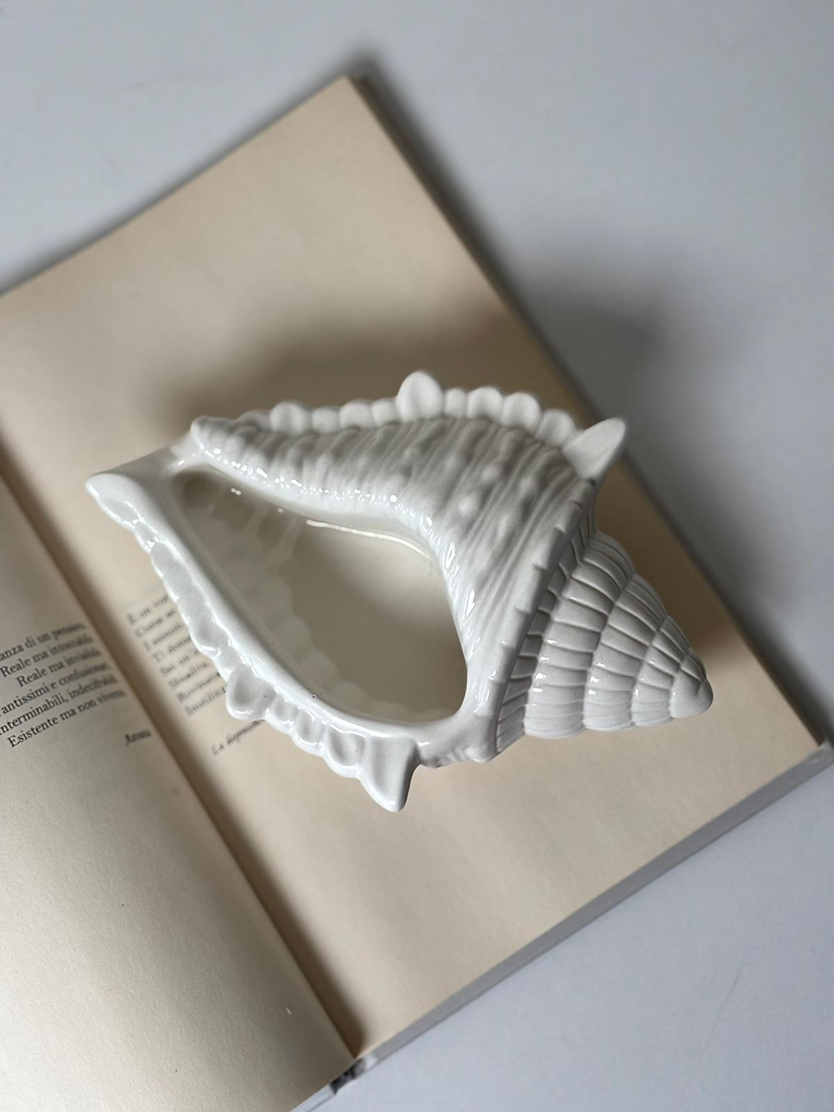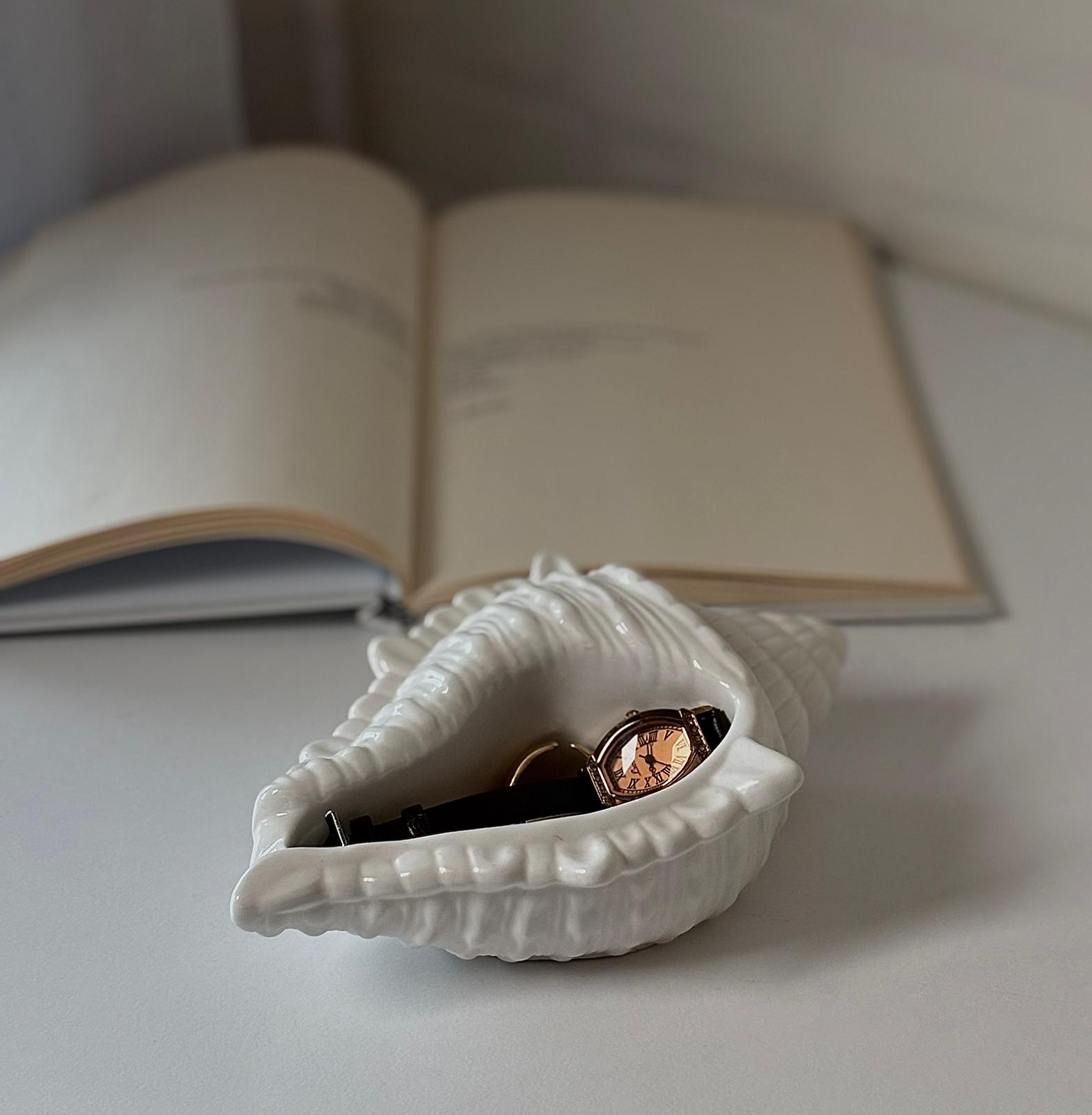 Piccolo scrigno in gesso ceramico sapientemente modellato a forma di conchiglia, ideale per conservare anelli, collane e preziosi oggetti di valore. La sua struttura elegante e la texture raffinata ne fanno un elemento decorativo di grande fascino, capace di elevare l'estetica di mensole, toelette e spazi intimi. Perfetto come dono consapevole e ben ponderato, questo pezzo infonde un'atmosfera marina e lirica agli ambienti, trasformando ogni dettaglio in un'occasione di bellezza consapevole.