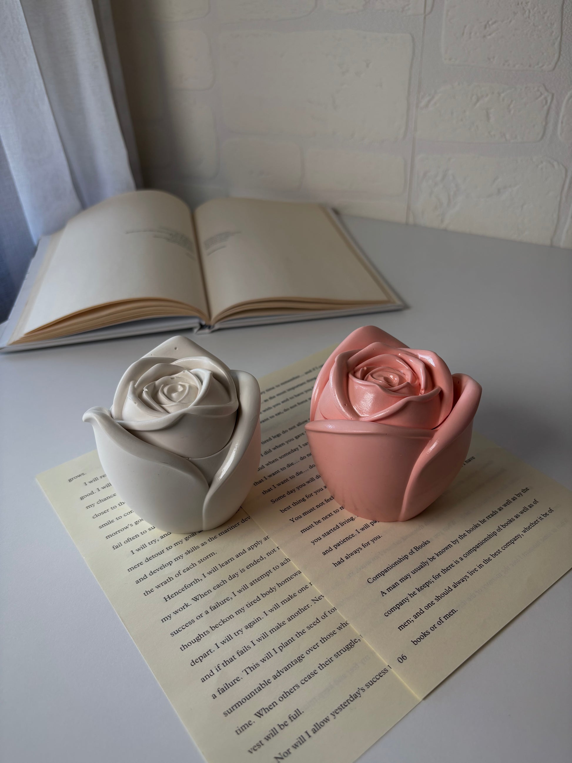 Candela artigianale da 100 grammi in pura cera di soia, formulata per una combustione lenta e uniforme senza residui tossici. Profumata con La Vie est Belle, una fragranza che sprigiona eleganza e sensualità in ogni ambiente. Il contenitore in gesso ceramico sagomato a rosa rappresenta un'opera di artigianato raffinato: ogni pezzo è modellato e rifinito manualmente, trasformando la candela in un oggetto decorativo di pregio. Ideale per chi desidera coniugare sostenibilità, estetica consapevole e qualità senza compromessi.
