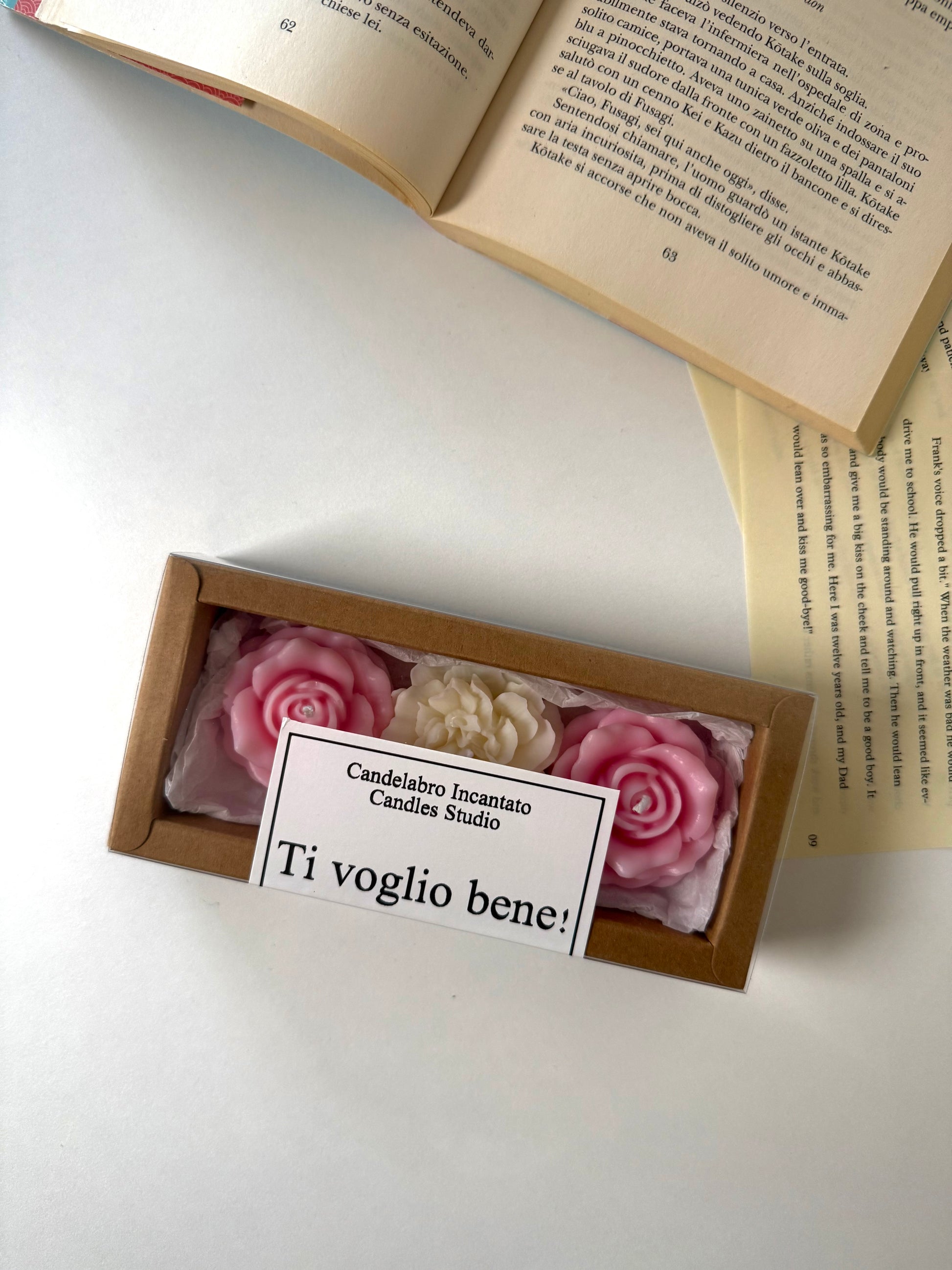 Tre Petali Cofanetto elegante che racchiude tre candele profumate ai boccioli di rosa, accompagnate da due delicate roselline e un raffinato garofano. Ogni elemento è stato selezionato per creare un'esperienza sensoriale completa: la fragranza floreale avvolge lo spazio con note dolci e sofisticate, mentre i fiori freschi aggiungono una dimensione visiva e tattile. Ideale come regalo premium o come momento di autocura per chi apprezza i dettagli artigianali e le composizioni curate con cura.