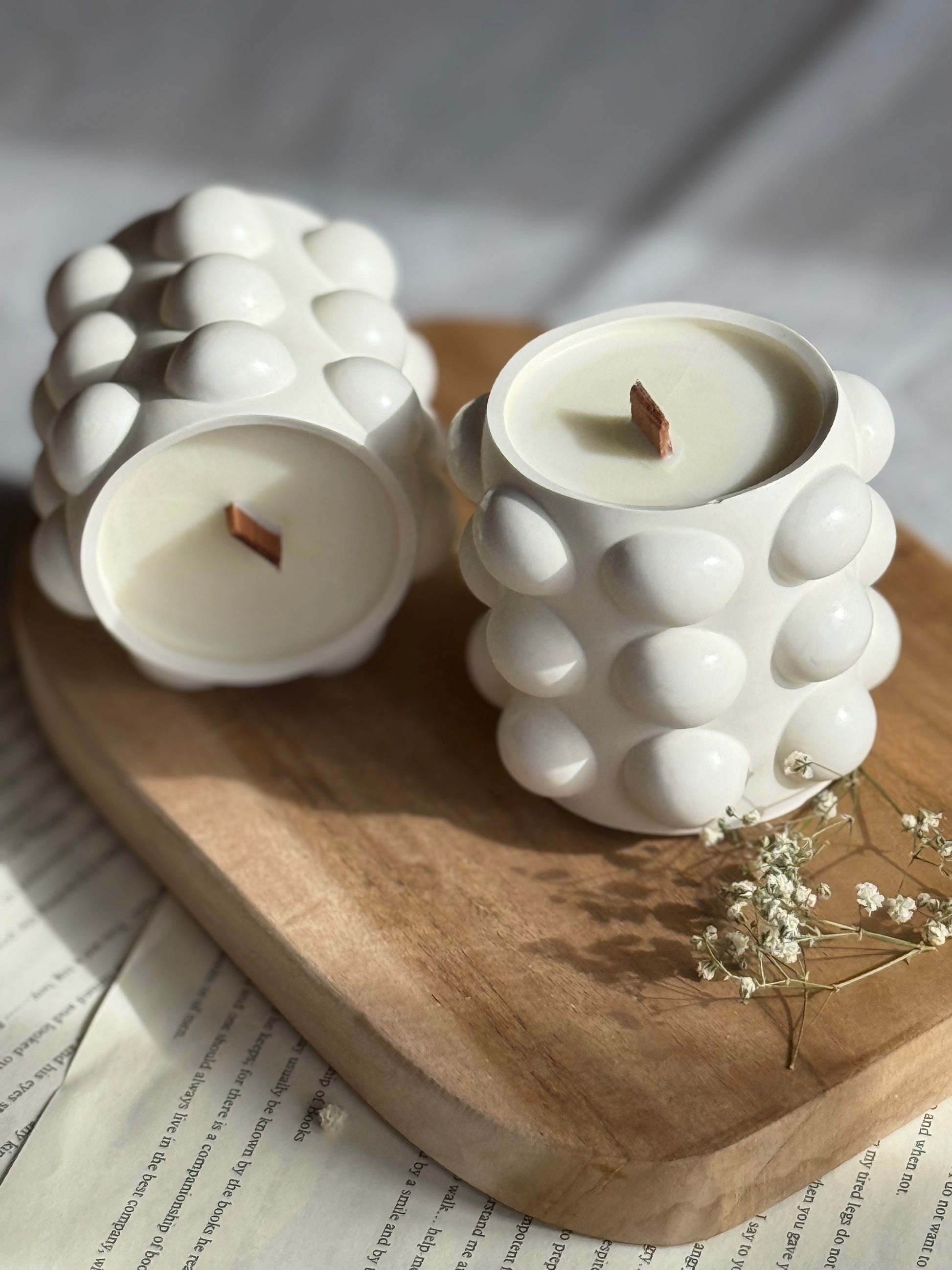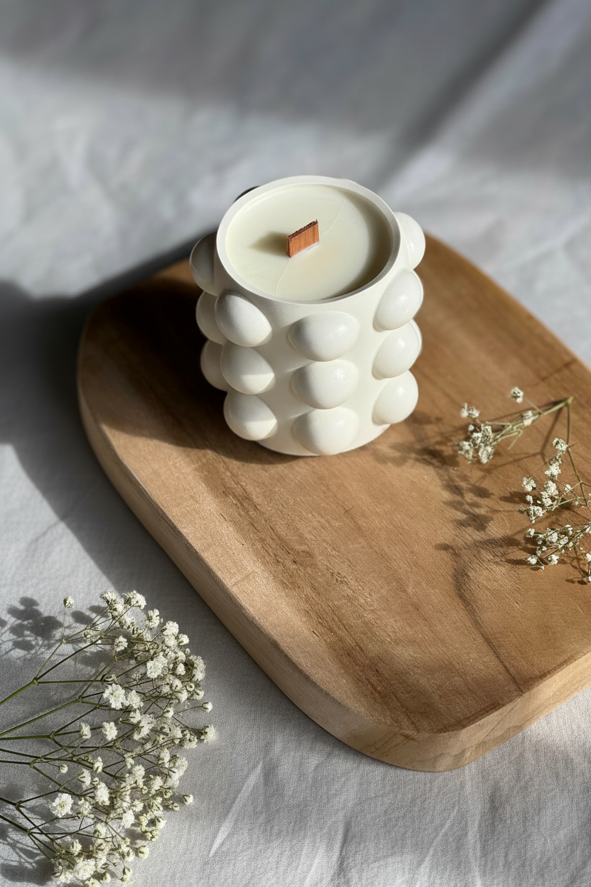 Orbis incarna l'eleganza scultorea in forma di candela artigianale. Realizzata in gesso ceramico e colata a mano, combina 130 g di cera di soia naturale con uno stoppino in legno che garantisce una combustione pulita e uniforme. Il delicato crepitio evoca l'atmosfera intima di un camino tradizionale, mentre il profumo Bergamotto avvolge lo spazio con note raffinate. Un'opera di artigianato che trasforma l'illuminazione in esperienza sensoriale consapevole.