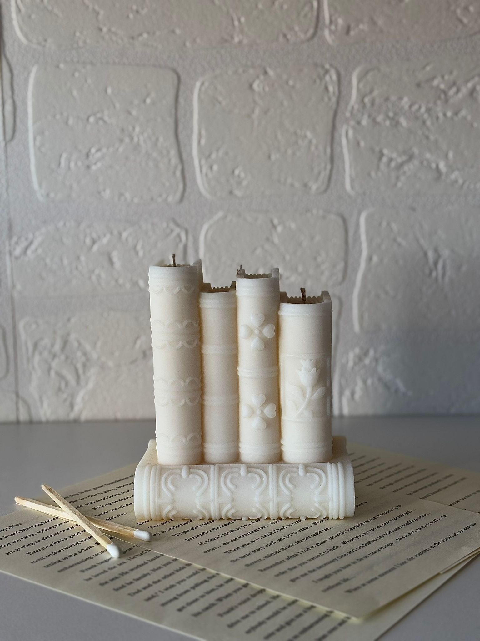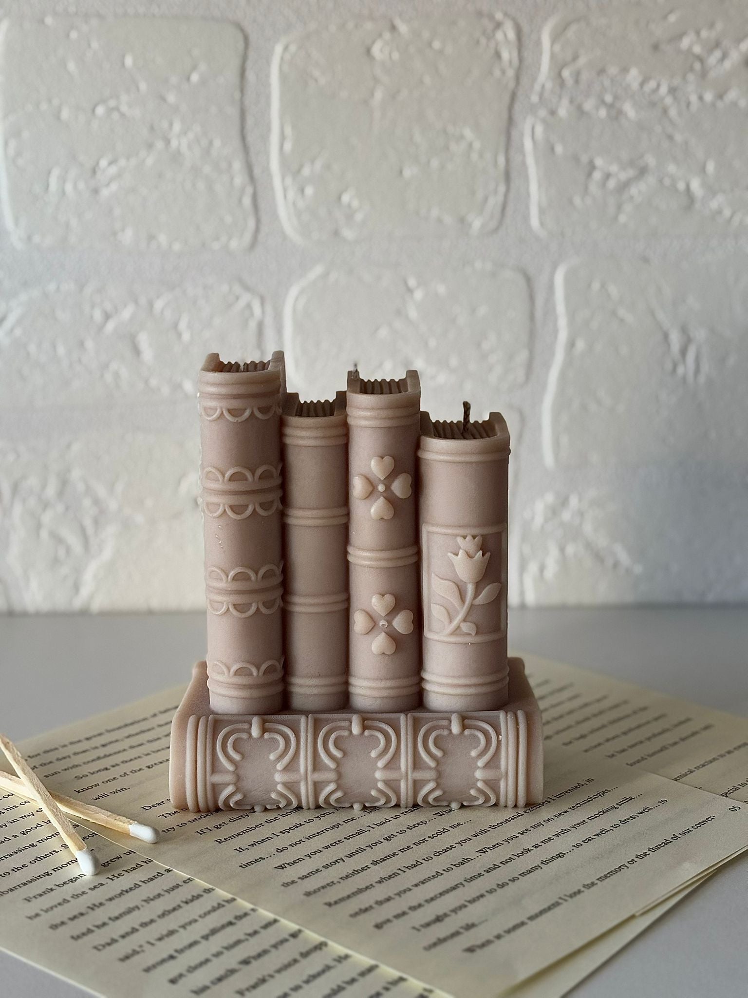 Scriptum Lux incarna l'eleganza letteraria in forma di candela. Realizzata in cera d'oliva sostenibile e profumata con vaniglia avvolgente, questa creazione artisanale riproduce fedelmente la silhouette di antichi volumi librari. Le pagine scolpite nel dettaglio catturano l'essenza delle biblioteche storiche, trasformando ogni ambiente con un'atmosfera nostalgica e raffinata. Ideale per collezionisti di oggetti unici e chi apprezza l'estetica vintage, Scriptum Lux combina funzionalità olfattiva e valore decorativo in un'unica opera.