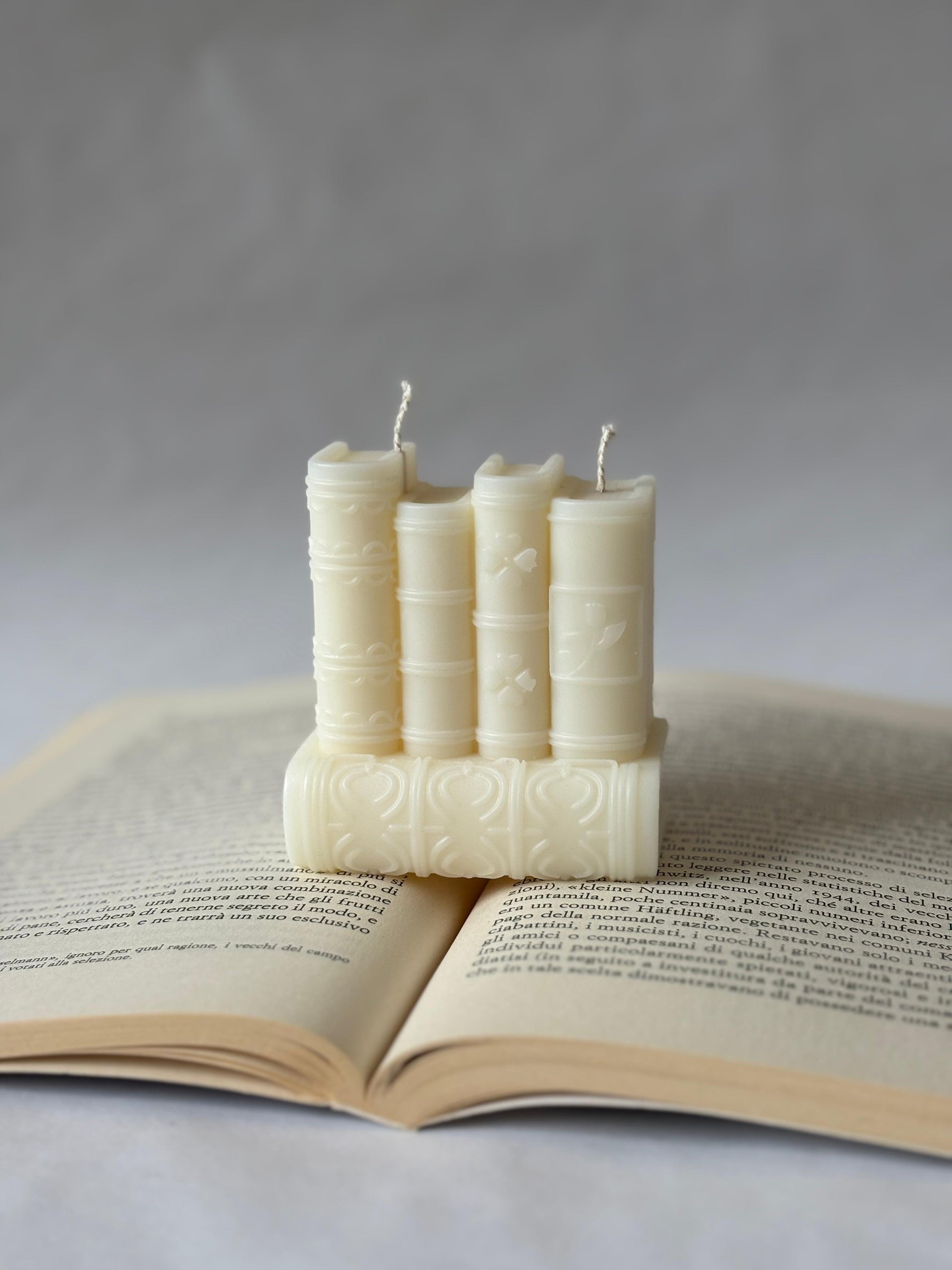 Scriptum Small è una candela in cera vegetale che reinterpreta il fascino dei volumi antichi. Con i suoi 8 centimetri di altezza, questa scultura luminosa celebra l'amore per la letteratura attraverso un design raffinato e consapevole. Perfetta per lettori appassionati e amanti del design curato, trasforma qualsiasi spazio in un'atmosfera di eleganza narrativa. Proposta in due varianti cromatiche, rappresenta un regalo significativo per chi apprezza l'artigianato di qualità e l'estetica letteraria.
