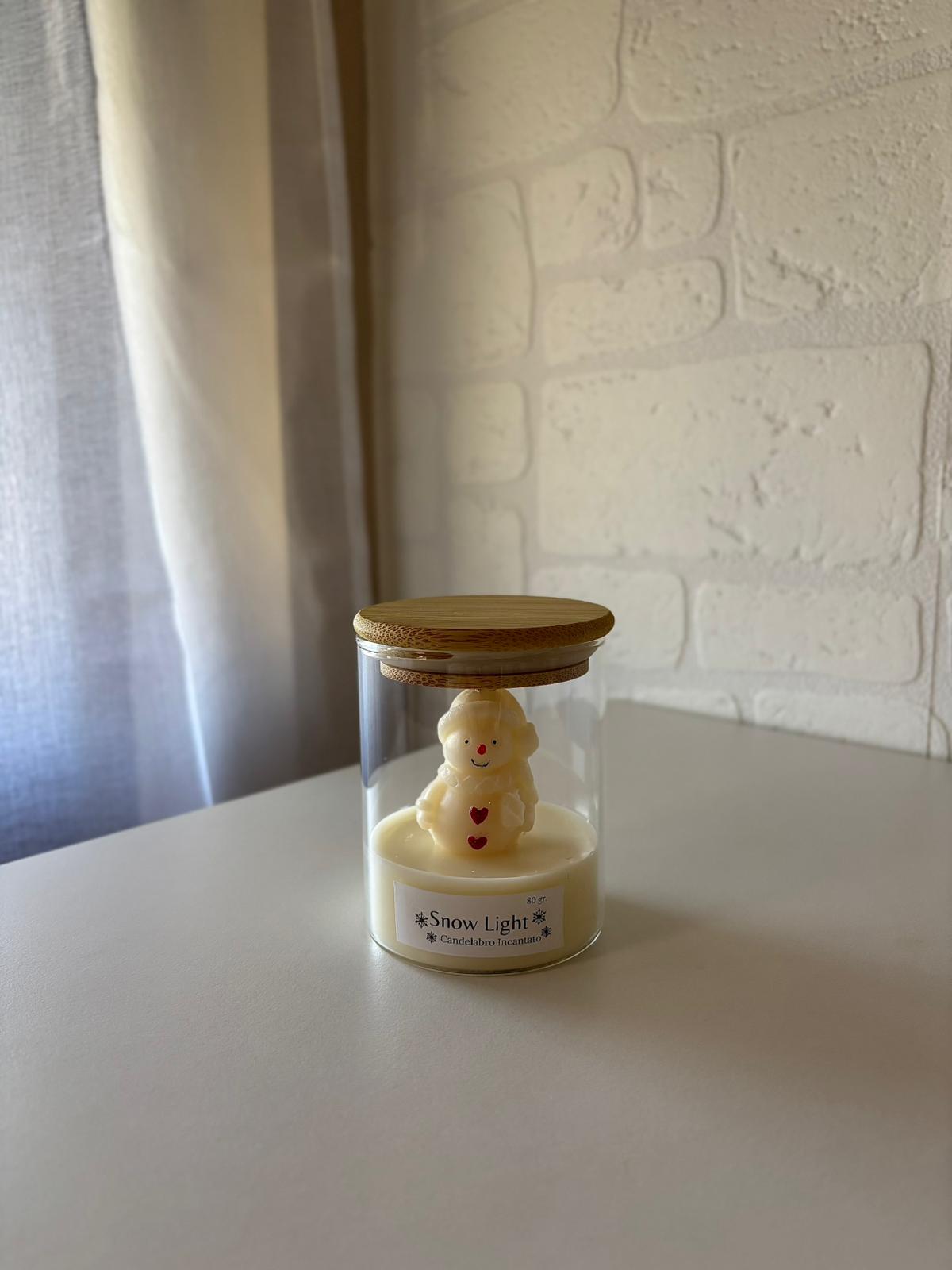 Snow Light cattura l'essenza magica dell'inverno con un delicato pupazzo di neve posizionato nello stoppino, creando un effetto luminoso affascinante quando accesa. Realizzata con una miscela di cera di soia e d'oliva, questa candela diffonde una luce calda e avvolgente che trasforma qualsiasi ambiente in uno spazio di serenità. La combinazione di ingredienti naturali garantisce una combustione pulita e duratura, mentre il design raffinato la rende un'aggiunta elegante alla decorazione invernale. Ideale per le serate fredde o come regalo sofisticato che incarna il fascino della stagione.